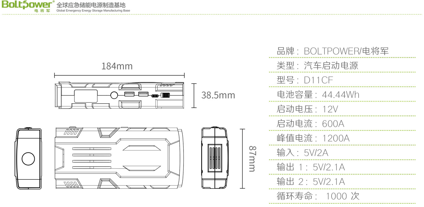 Boltpower電將軍D11CF汽車應急啟動電源